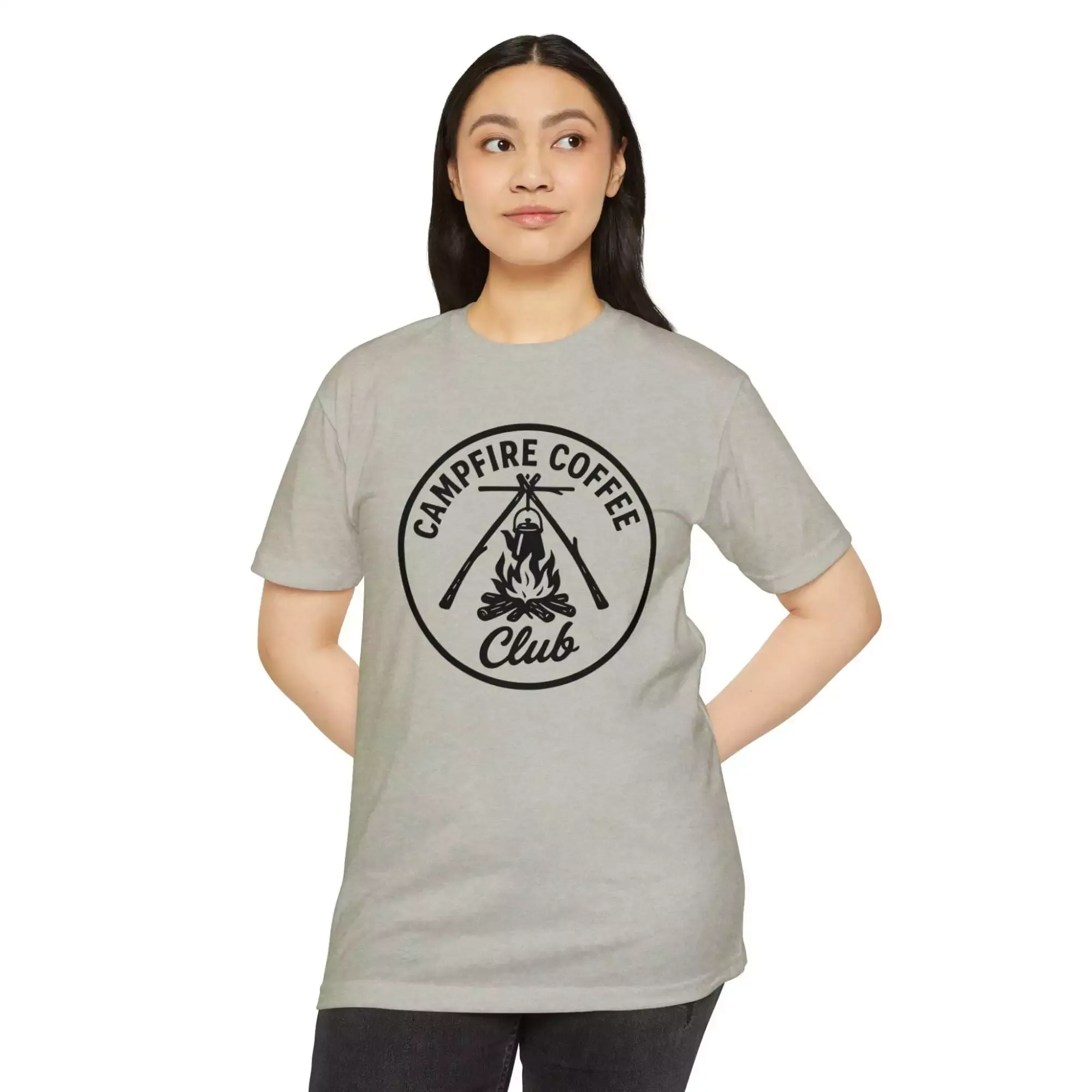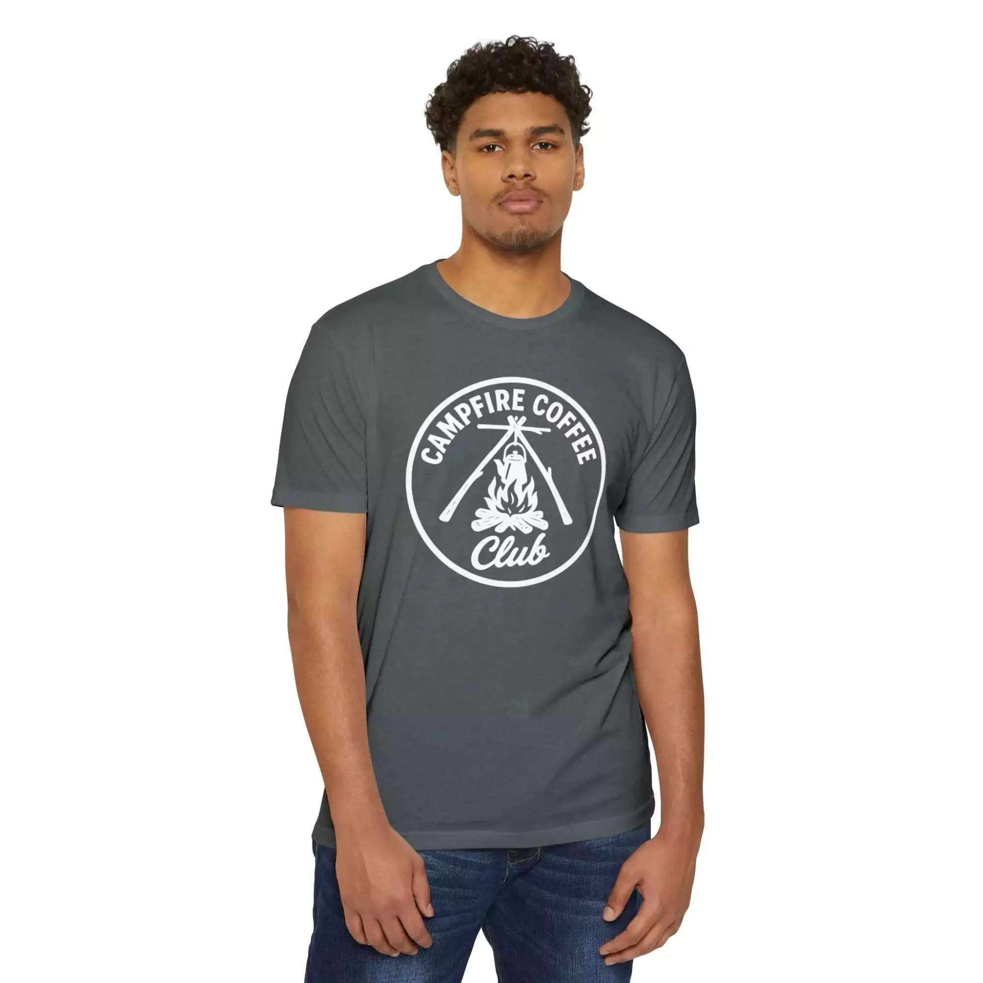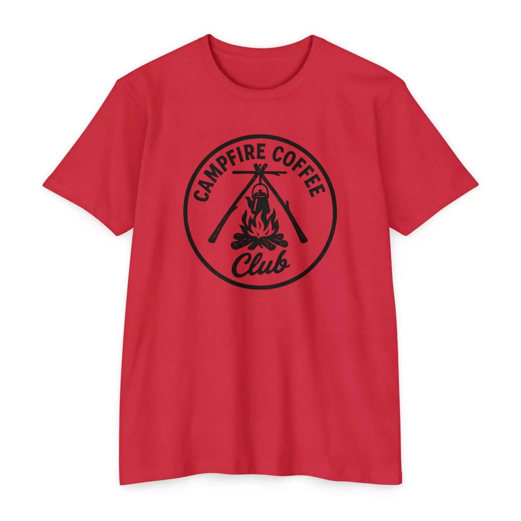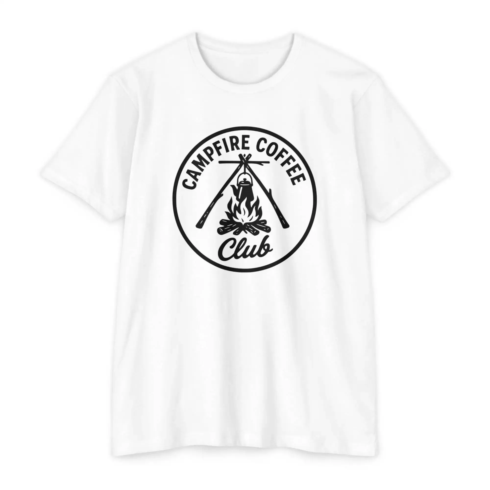 Campfire Coffee Club T-Shirt, Unisex Tee, Outdoor Adventure Shirt, Coffee Lover Gift, Campfire Apparel, Nature Enthusiast Top