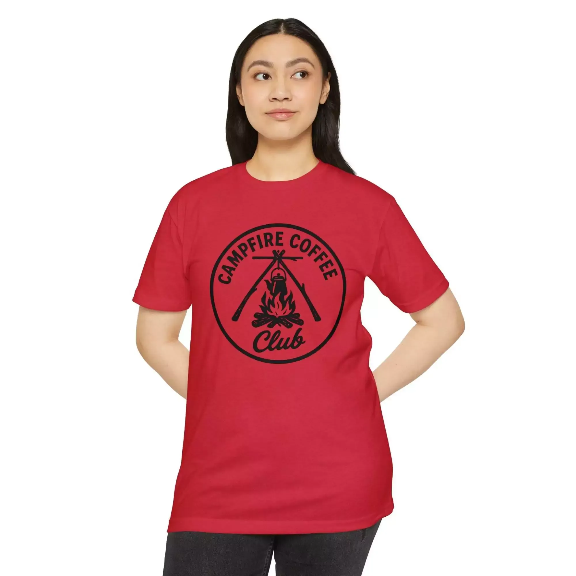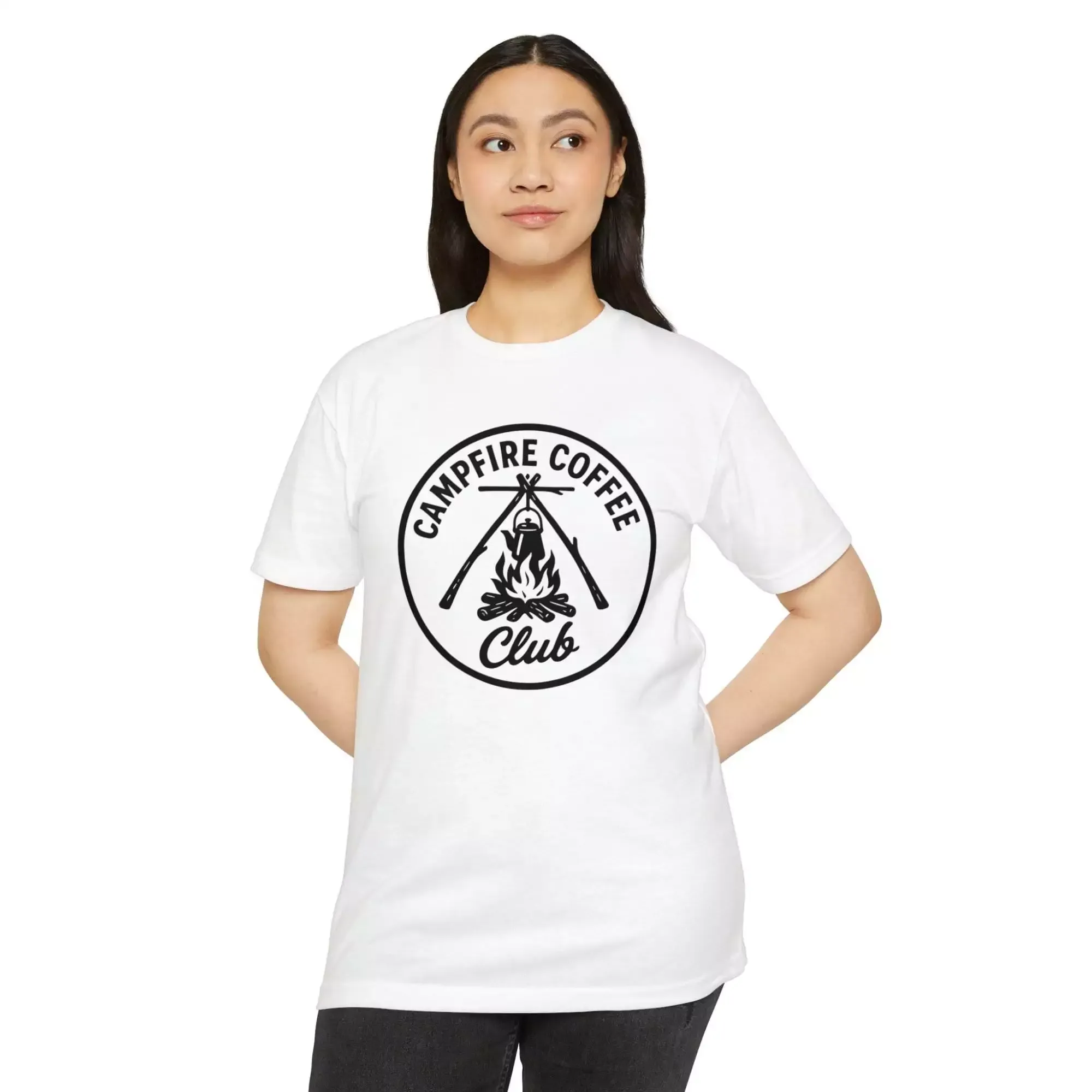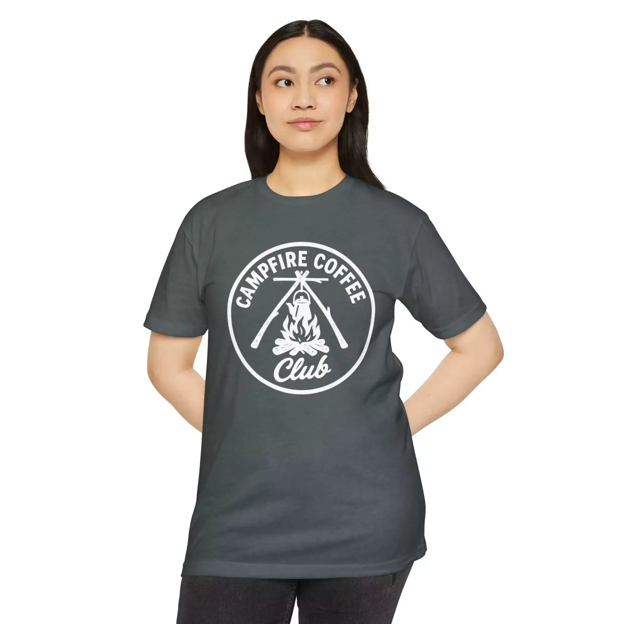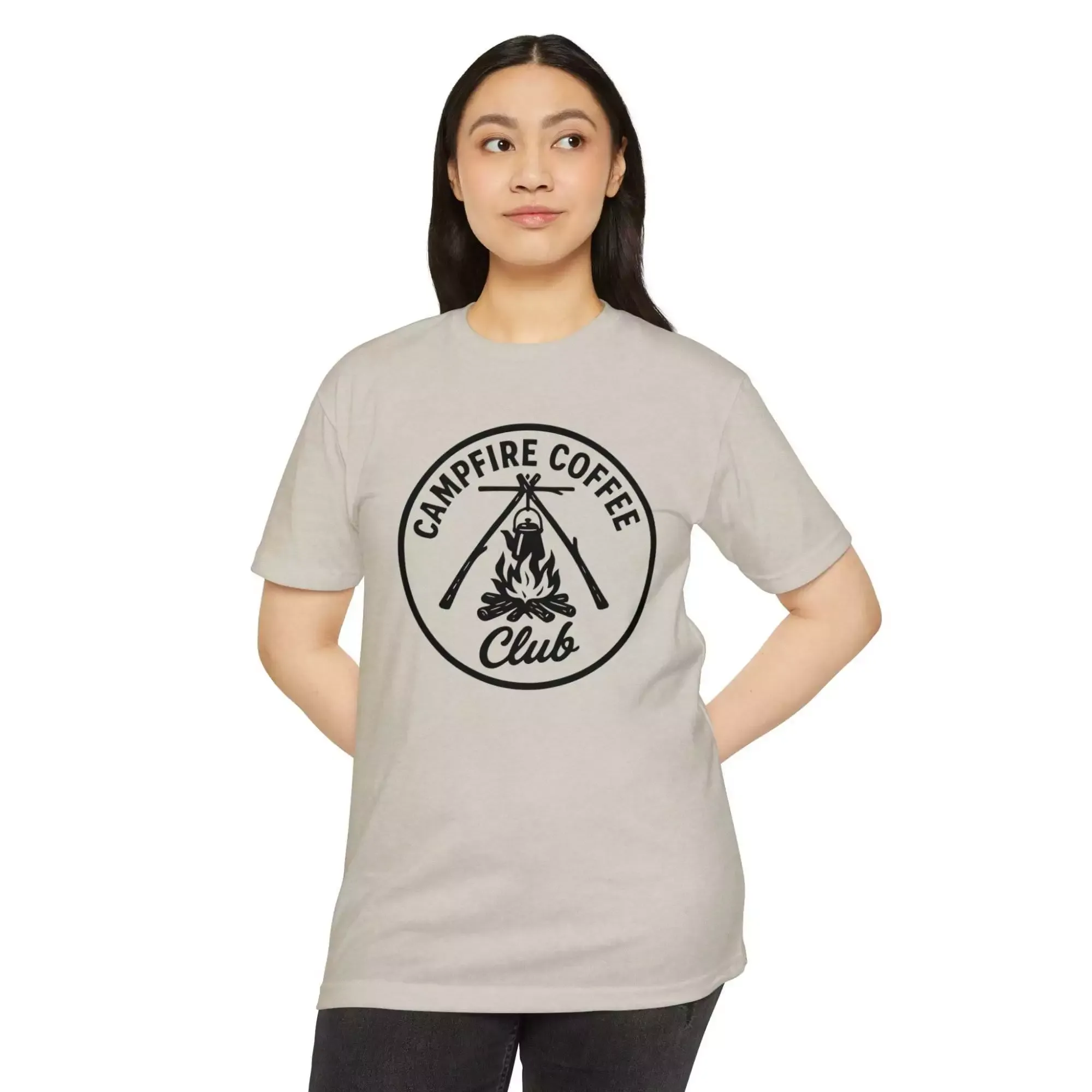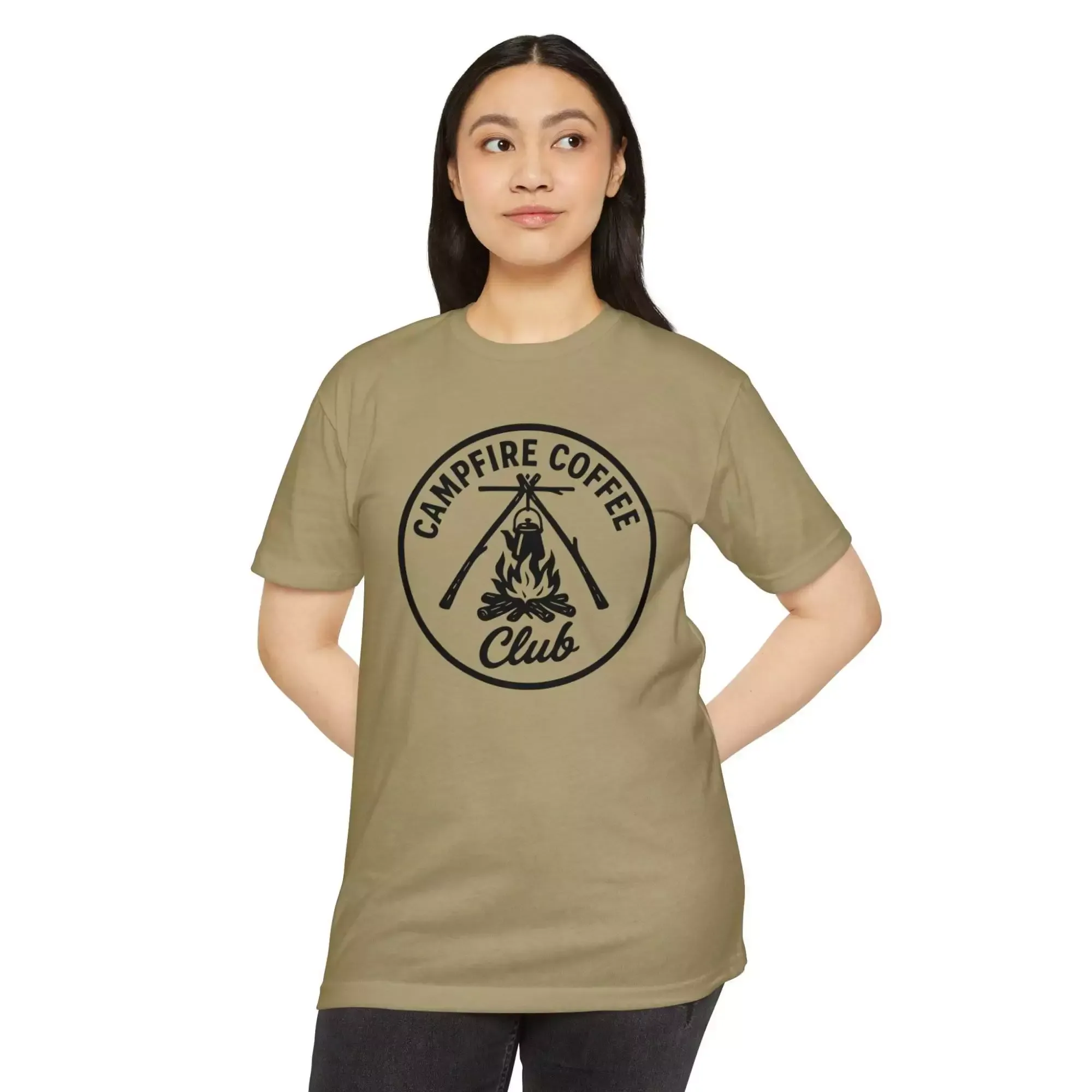 Campfire Coffee Club T-Shirt, Unisex Tee, Outdoor Adventure Shirt, Coffee Lover Gift, Campfire Apparel, Nature Enthusiast Top