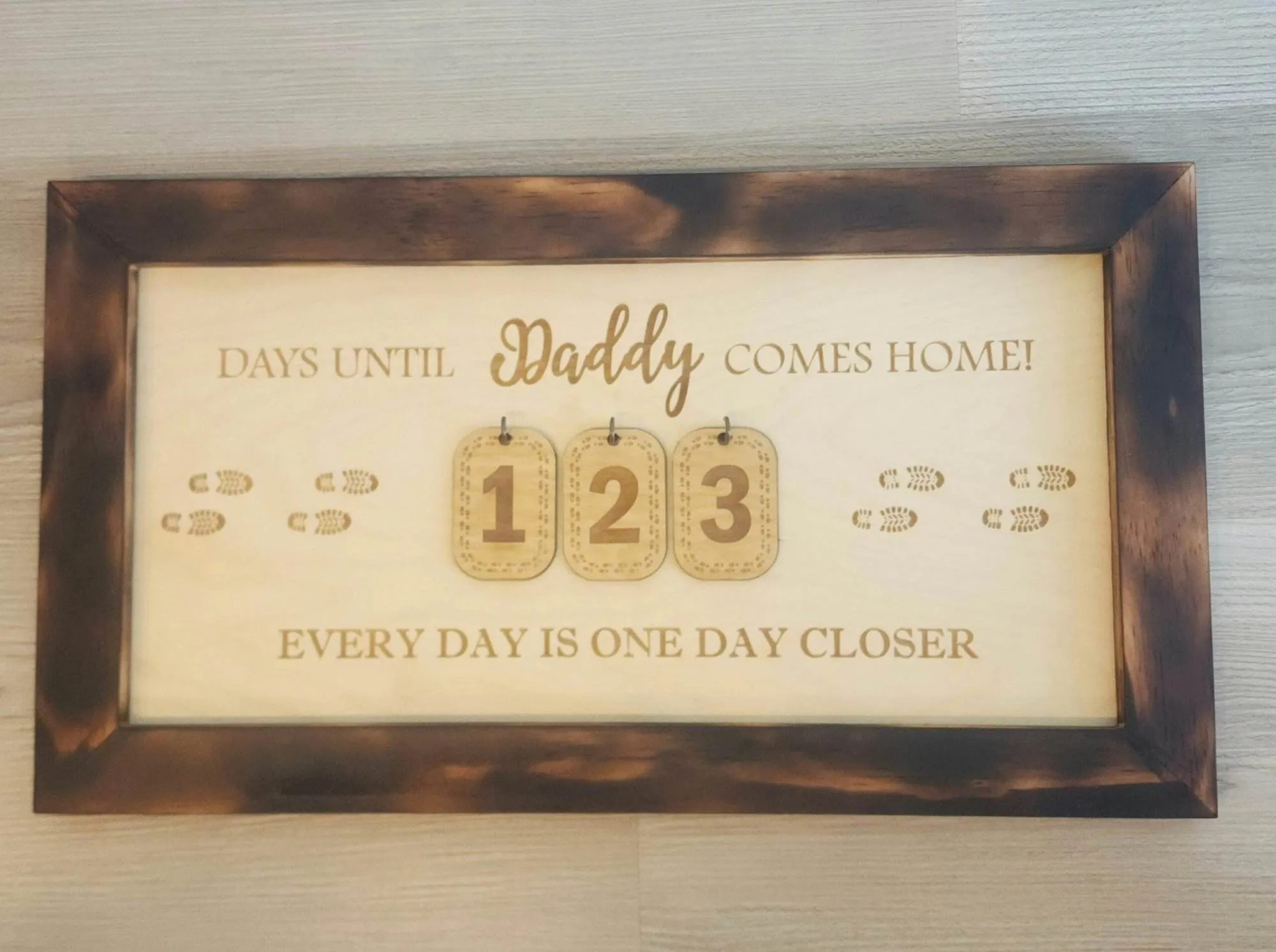 This countdown sign offers more than just a number; it provides a source of comfort and unity for families during tough separations. Imagine the daily moment of gathering together, updating the countdown, and sharing hope and excitement until the day Daddy walks through the door again. It turns a long wait into a shared, hopeful ritual that strengthens family bonds.
