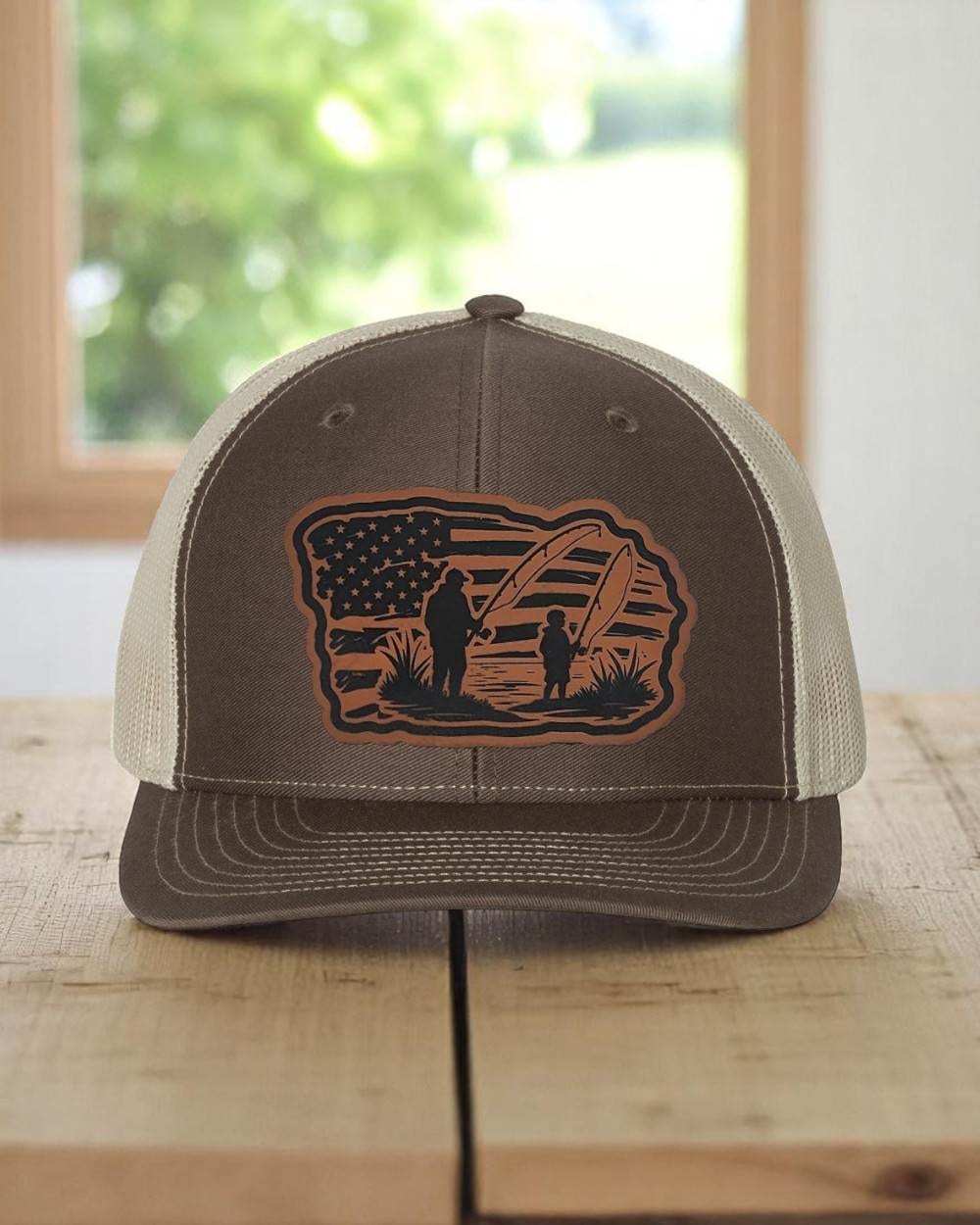 Distressed US Flag and Trout Leatherette Hat Patch – Stylish Fishing Accessories