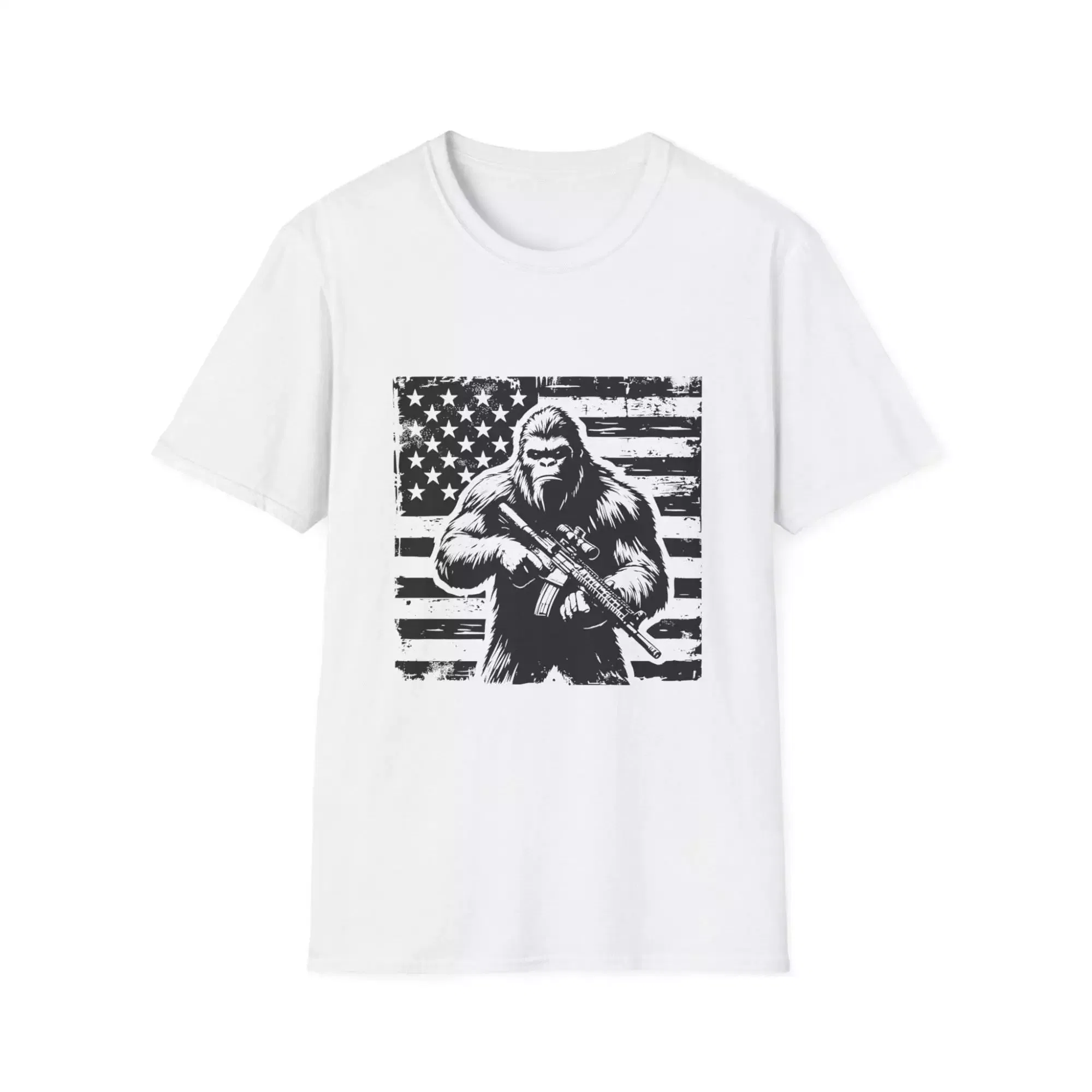 A distressed US flag T-shirt featuring a trout, perfect for those who love fishing and patriotic designs. This softstyle T-shirt is made from durable and smooth fabric, with a classic fit and crew neckline for versatile styling. Ideal for adults who enjoy outdoor activities and celebrating holidays like Independence Day.