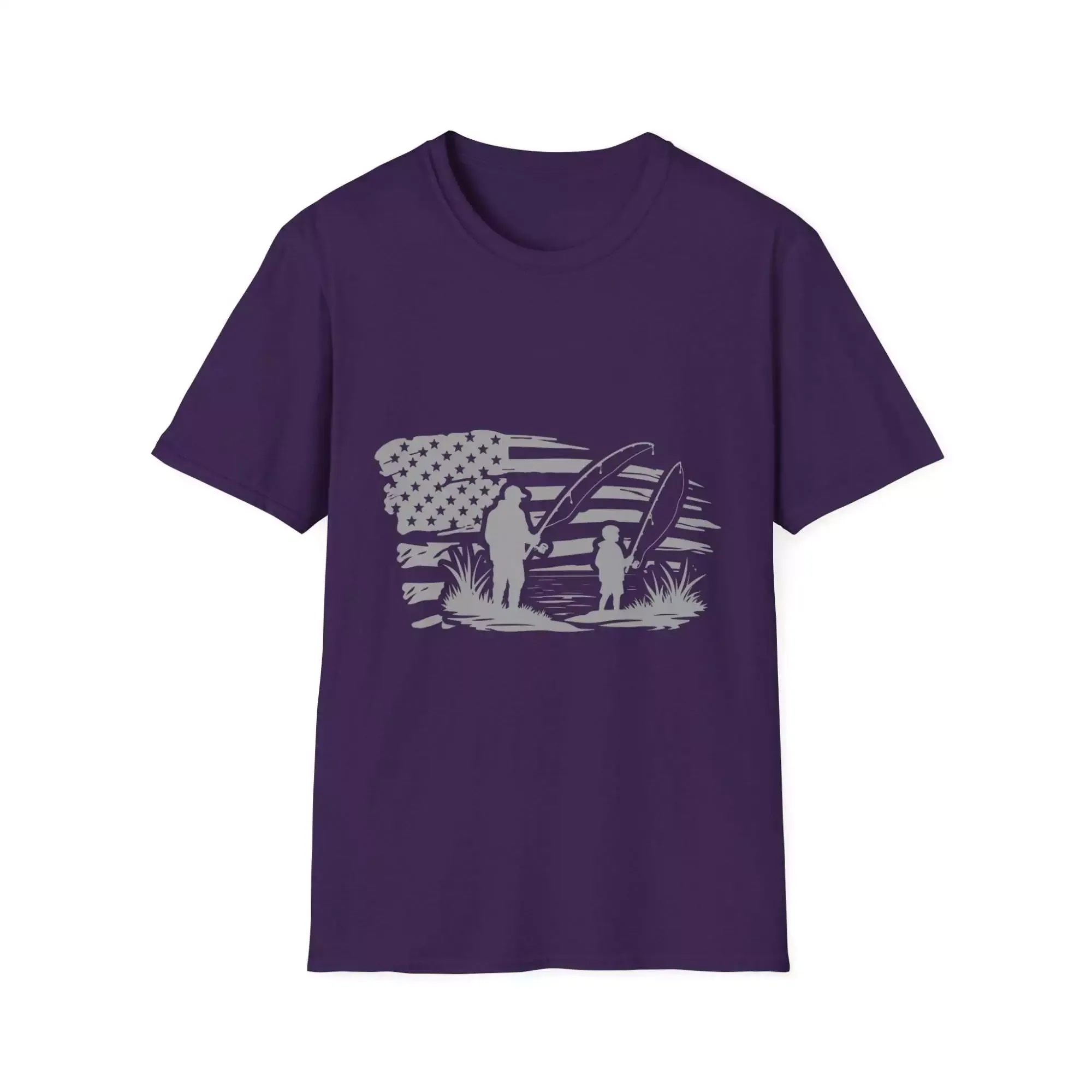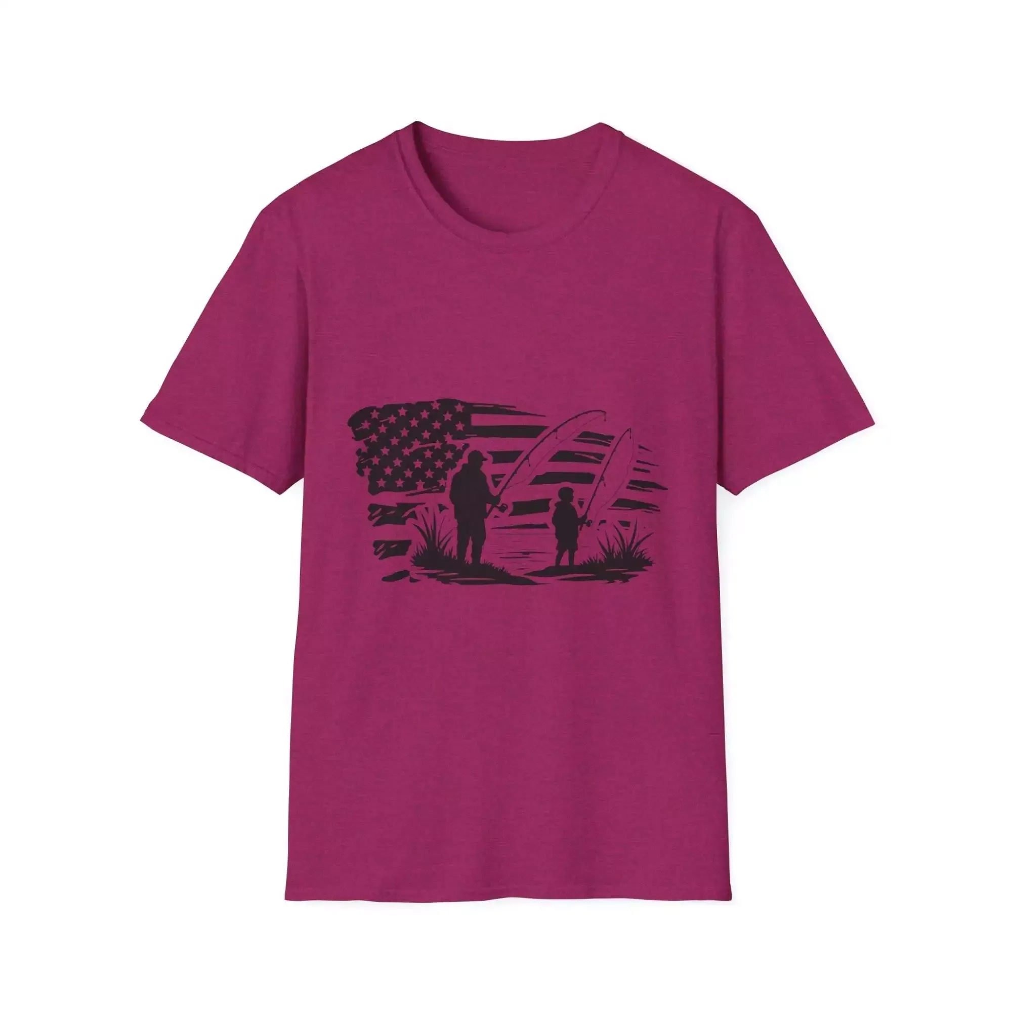 This Fishing T-Shirt features a design of a Father and Son Fishing with a distressed US flag, perfect for fishing enthusiasts and patriotic individuals. The comfortable unisex style and lightweight fabric make it ideal for year-round wear. Suitable for adults, this t-shirt’s classic fit and versatile style can be worn for any occasion, from casual outings to Fourth of July celebrations.
