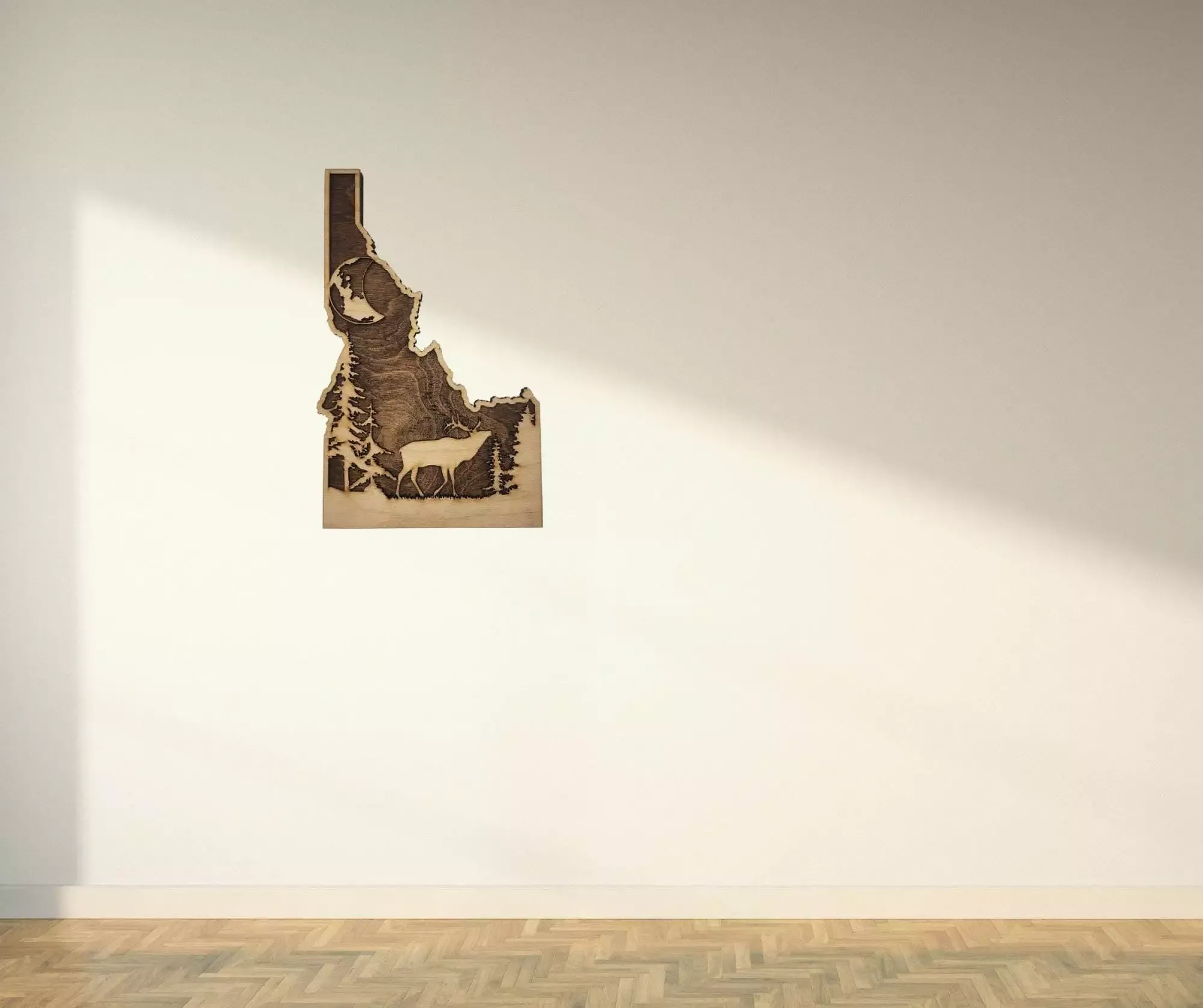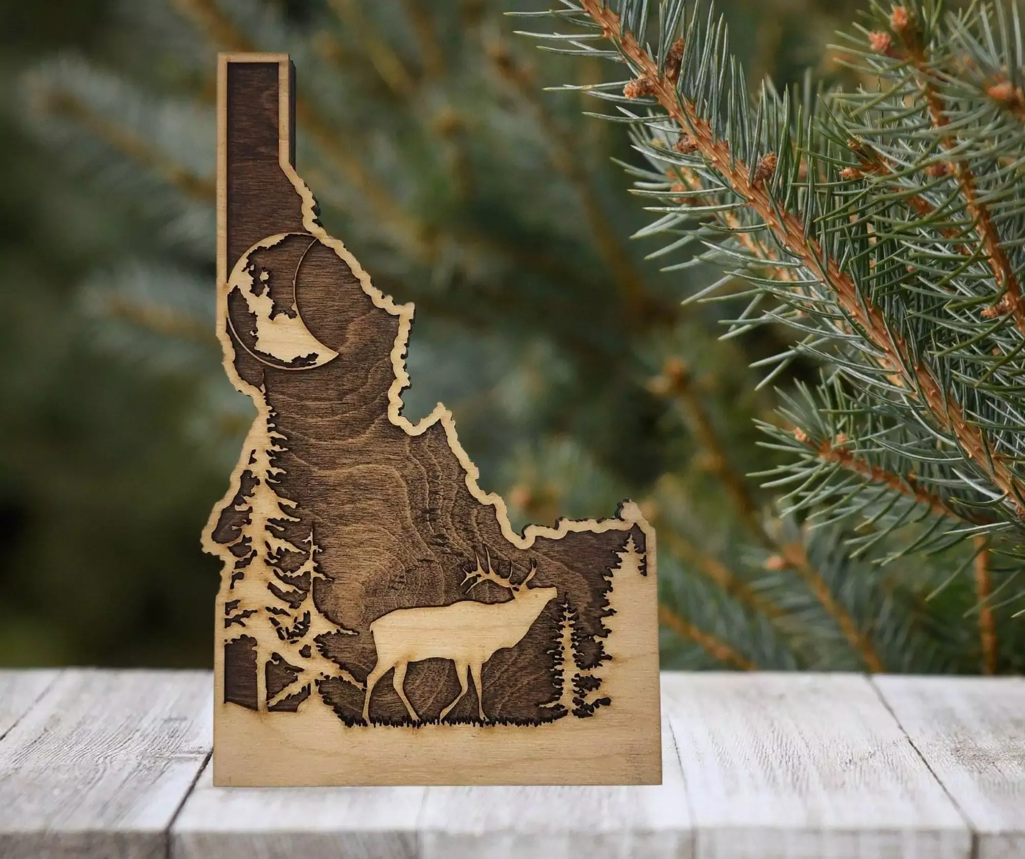 Idaho Sign – Rustic Home Decor with Forest Scene, Perfect Gift for Idaho Lovers & Nature Enthusiasts – Walnut Stain