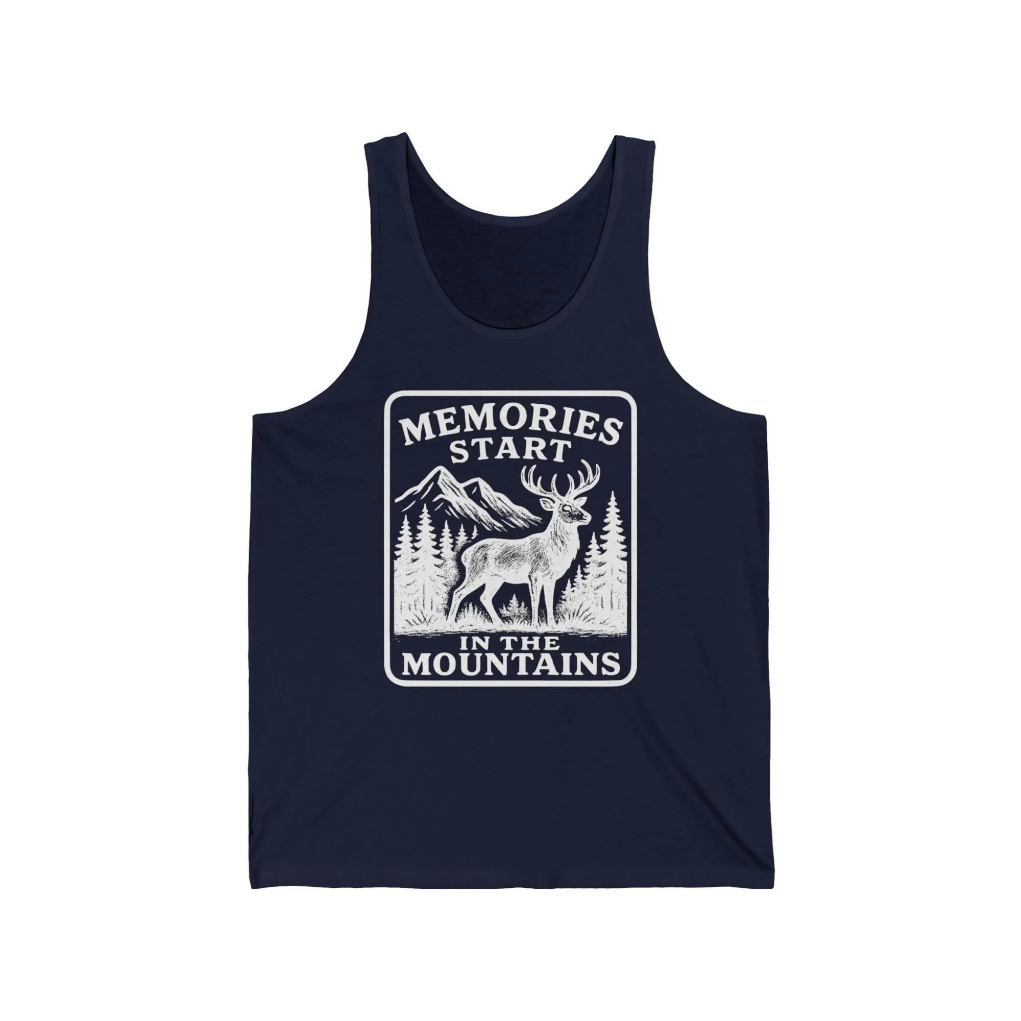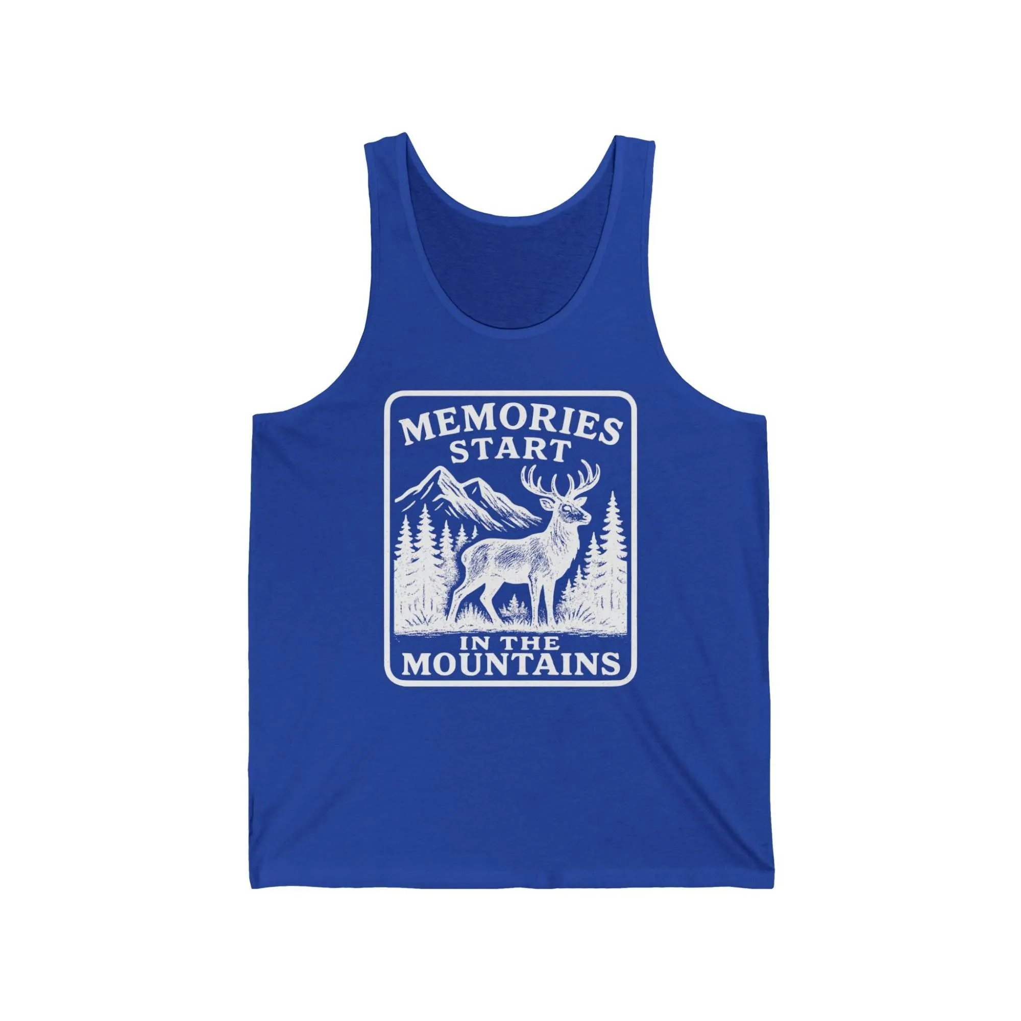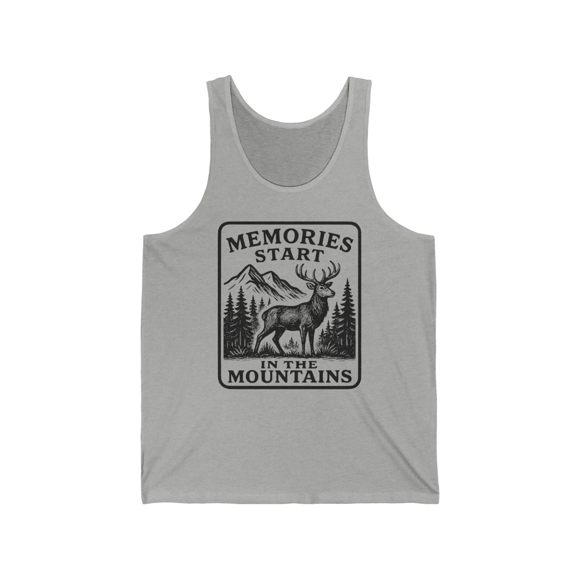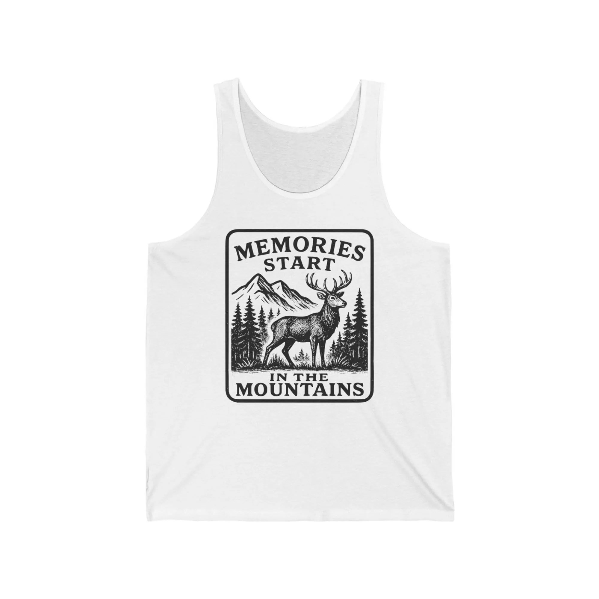 Memories Start in the Mountains Unisex Jersey Tank Top, Mountain Lover Gift, Nature Enthusiast Apparel, Summer Wear, Adventure Tank