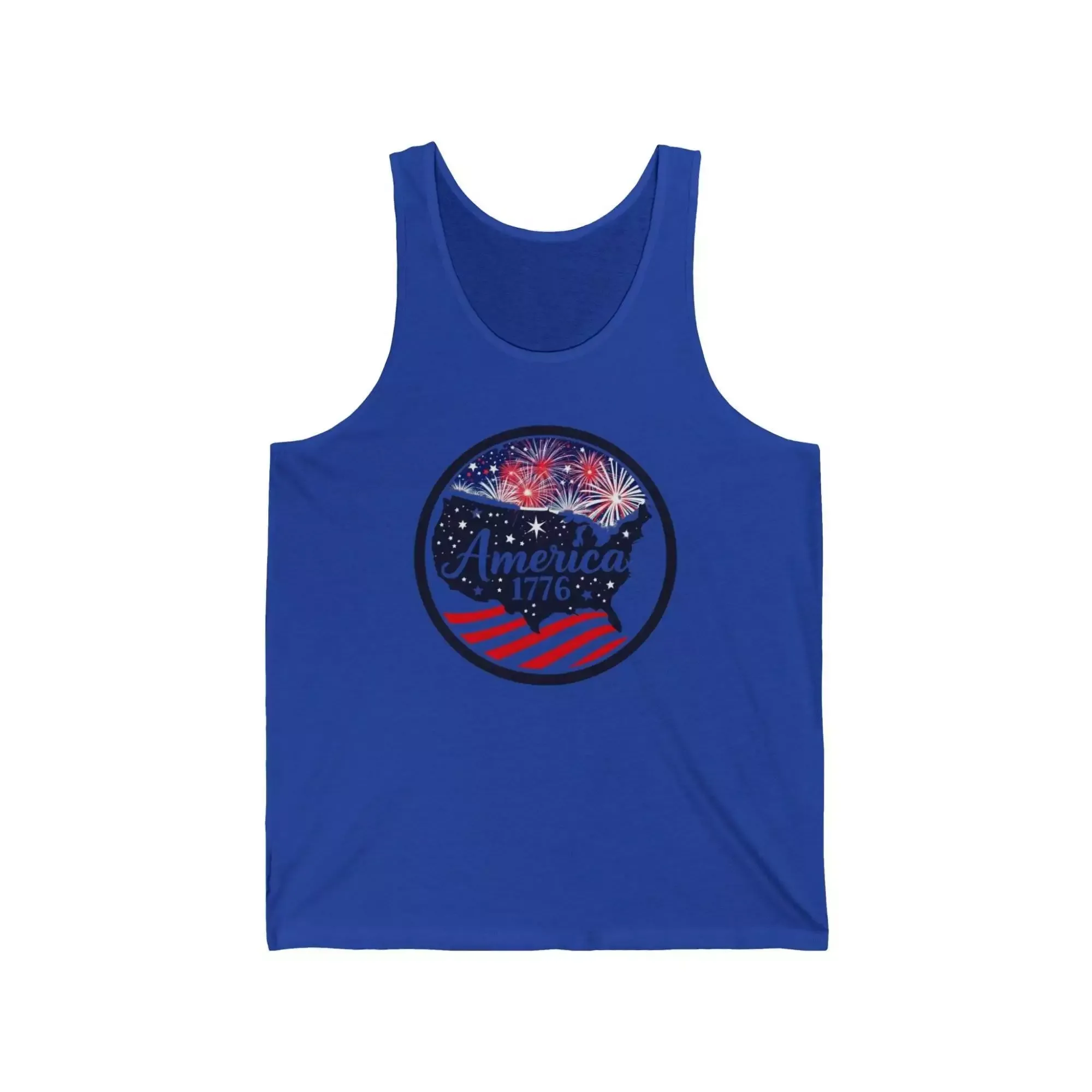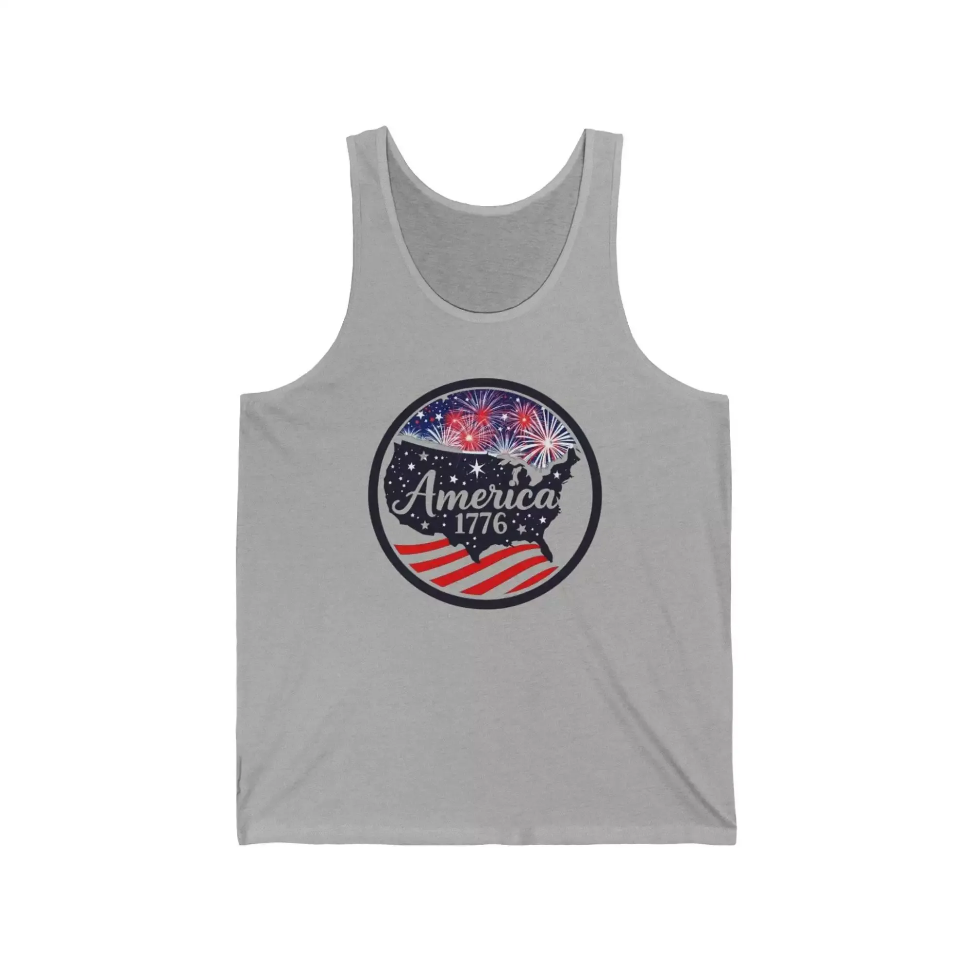 Patriotic Unisex Jersey Tank Top – America 1776 Fireworks Design, Independence Day, Summer BBQ, Fourth of July, Casual Wear