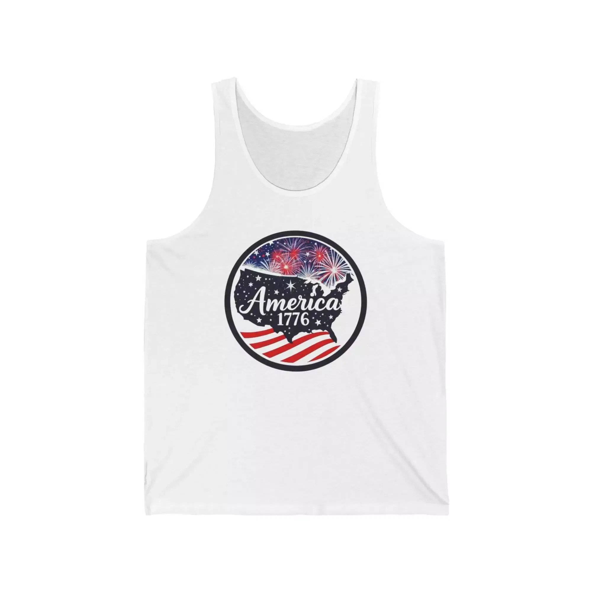 Unisex Jersey Tank Top with ‘Party Like It’s 1776’ Design, Patriotic Summer Wear, 4th of July, BBQ, Casual Styles, Comfortable Fit