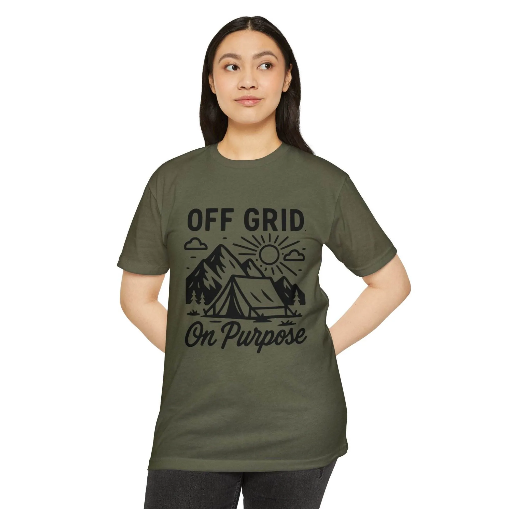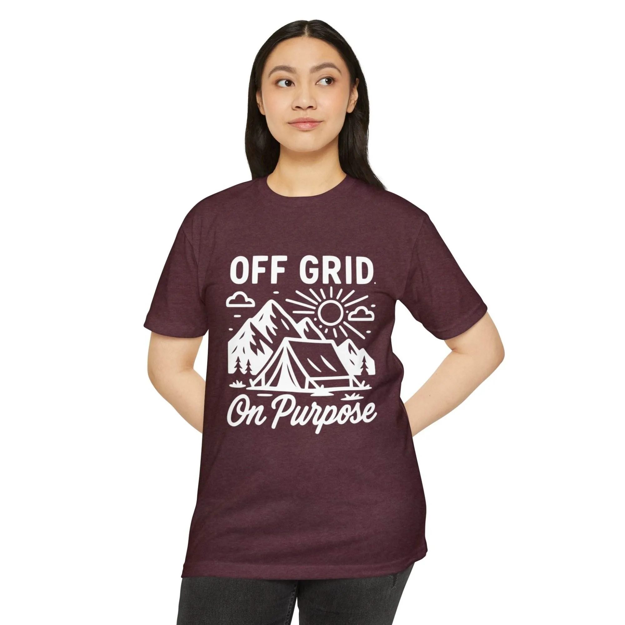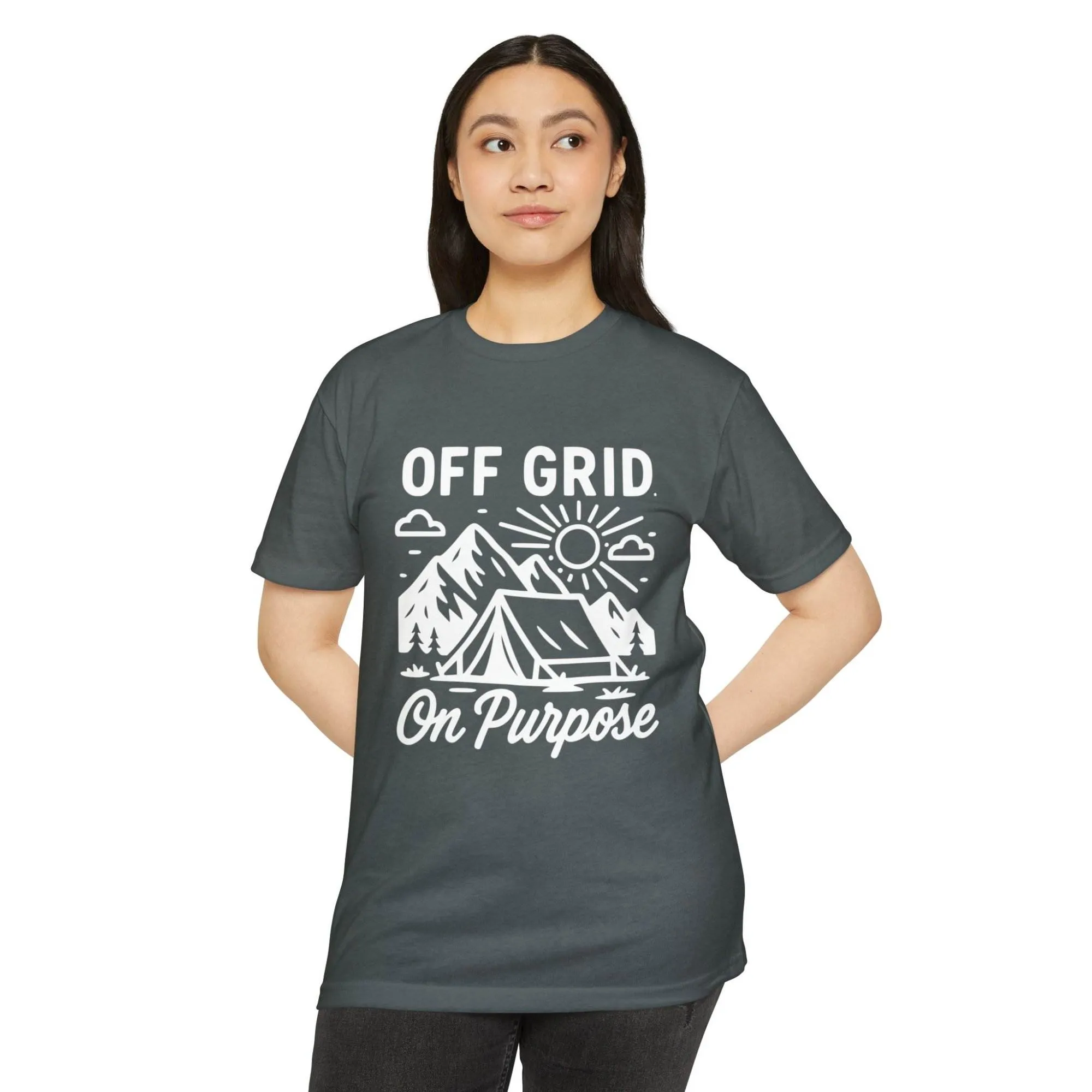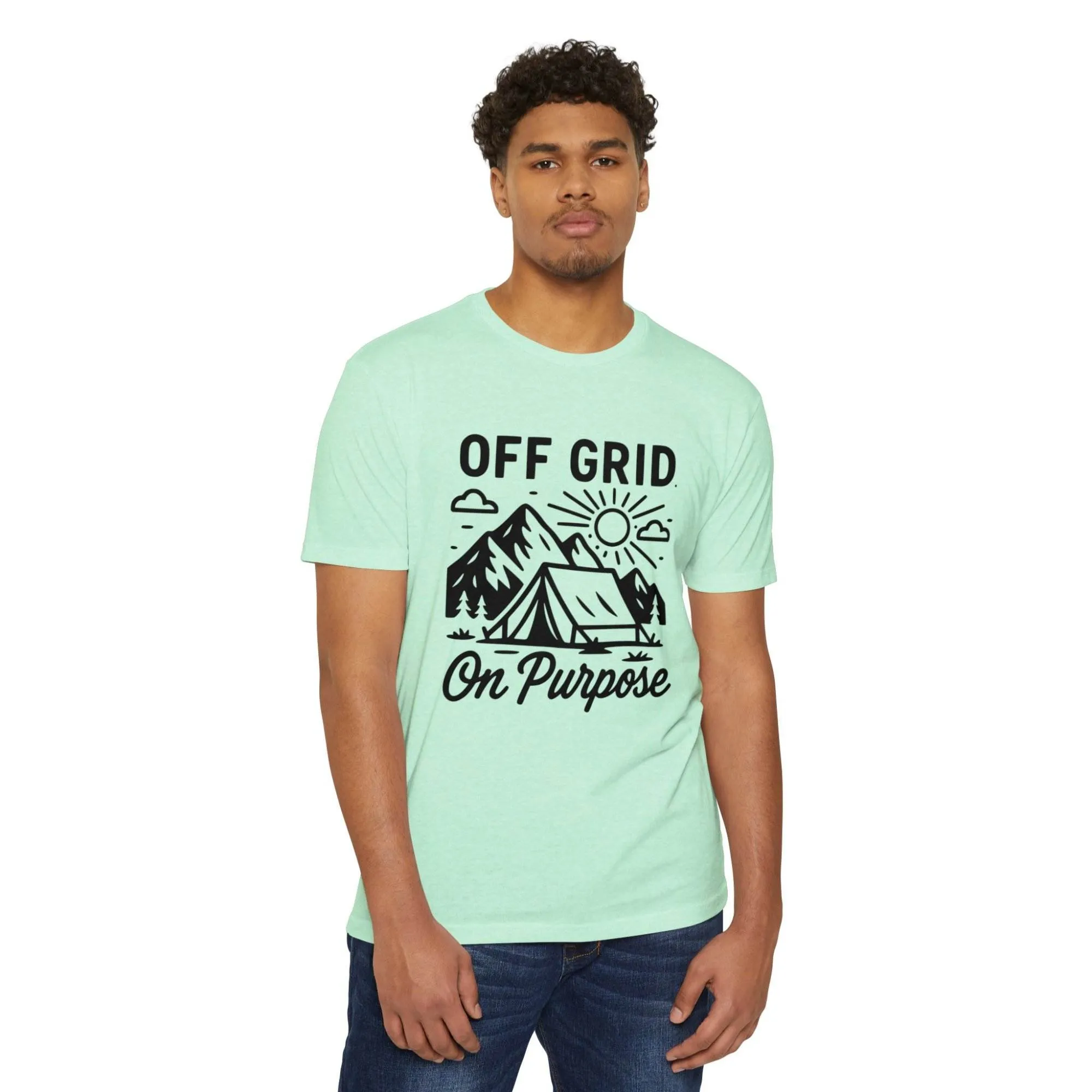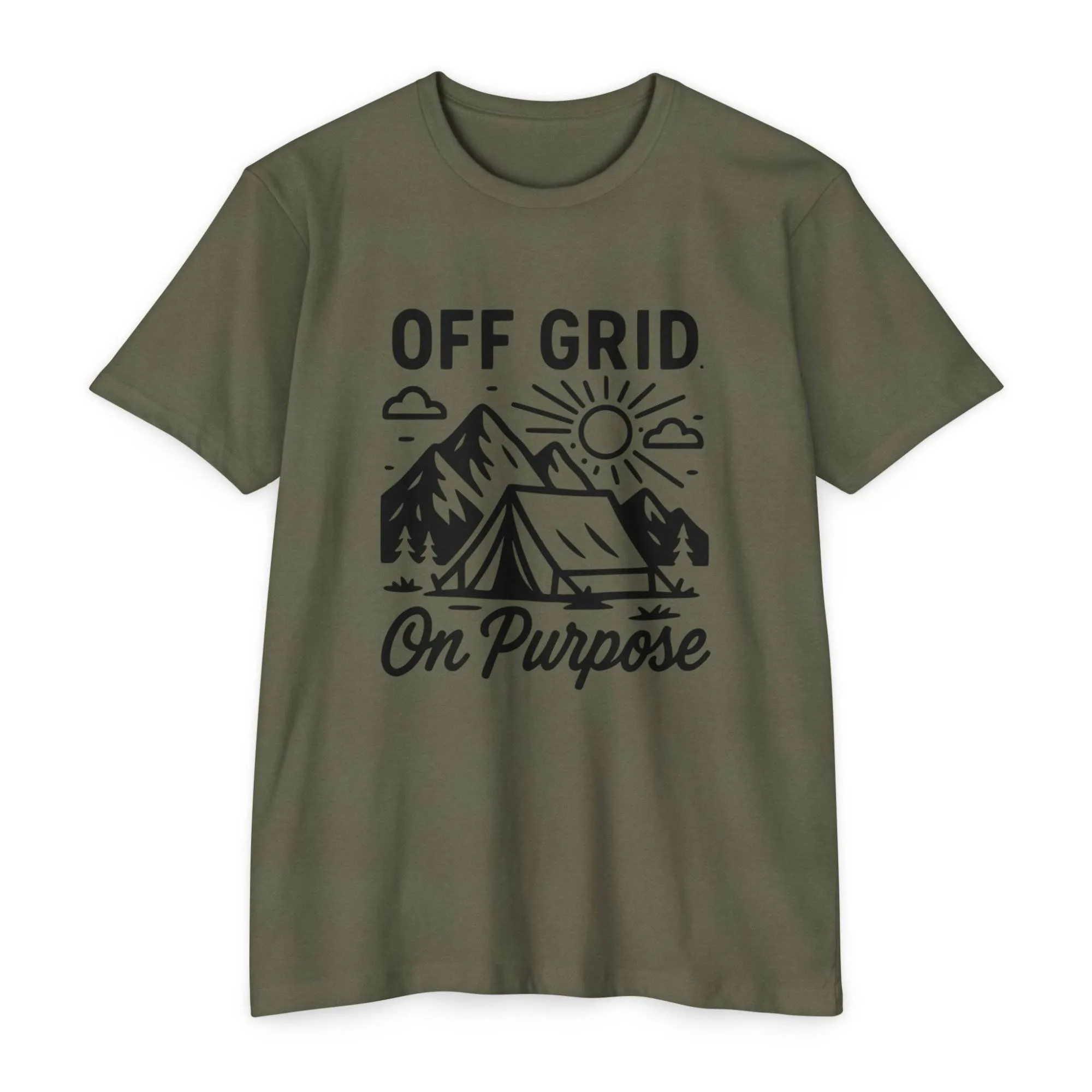 Unisex Outdoor Adventure T-Shirt | Off Grid On Purpose | Hiking, Camping, Travel, Nature Lover, Gift for Outdoorsy Friends